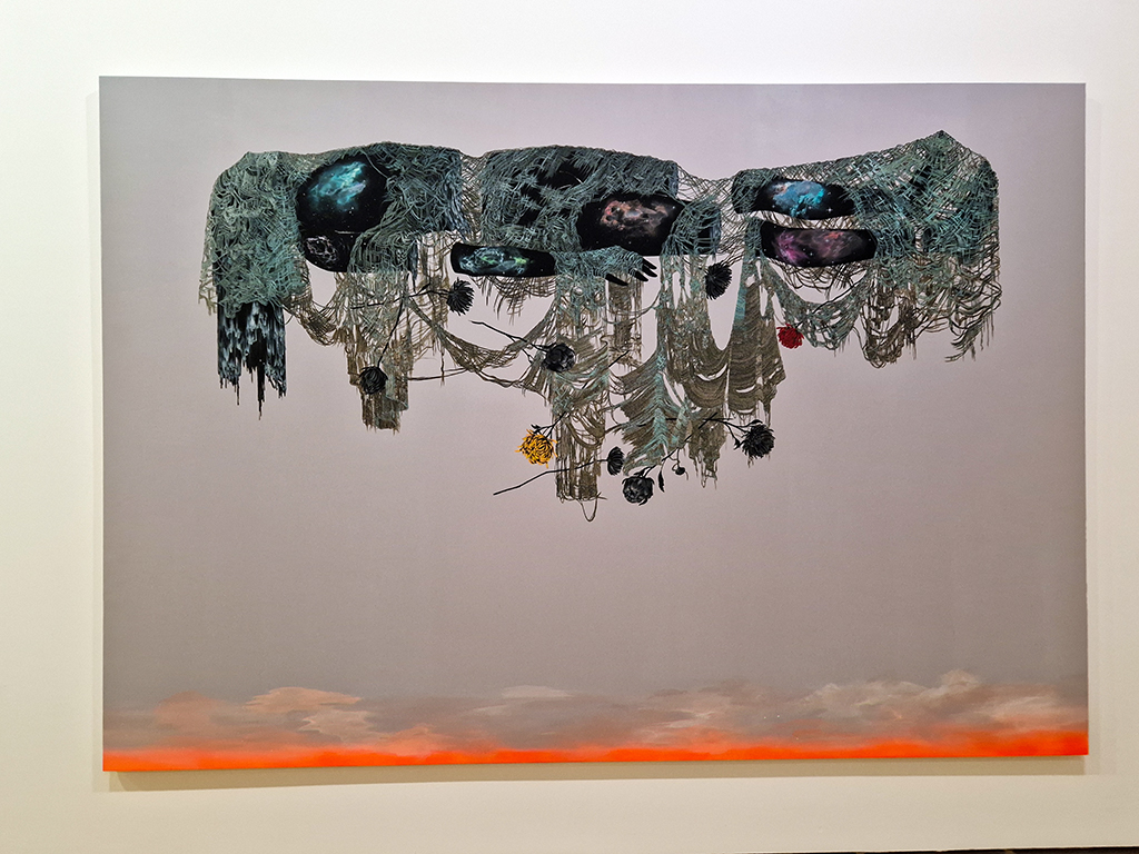 Des souffrances que son travail l’aide à assimiler. Comme sur son tableau sublimation qui met en scène la figure mythologique de l’aswang, créature maléfique, croqueuse d’hommes et capable de scinder son corps en deux. Une façon d’évoquer la « fragmentation de l’identité » subie par son auteure mais qui est également « source de pouvoir ».